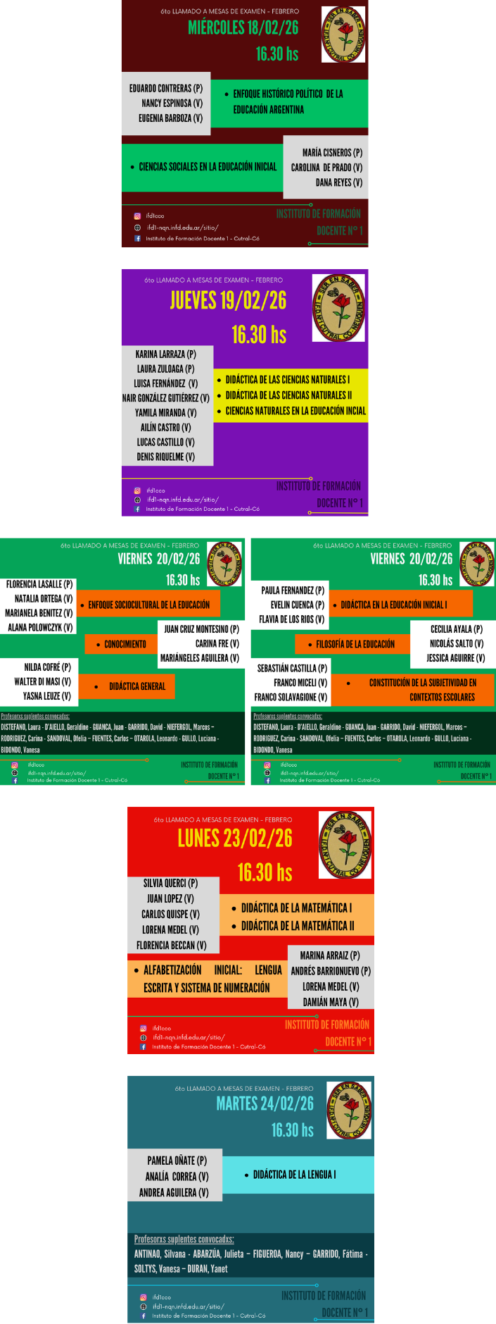 Profesorxs suplentes convocadxs: SAMBUEZA, Rocío – PONCE, Carla – AQUINO, Melina – LUCERO, Antonia