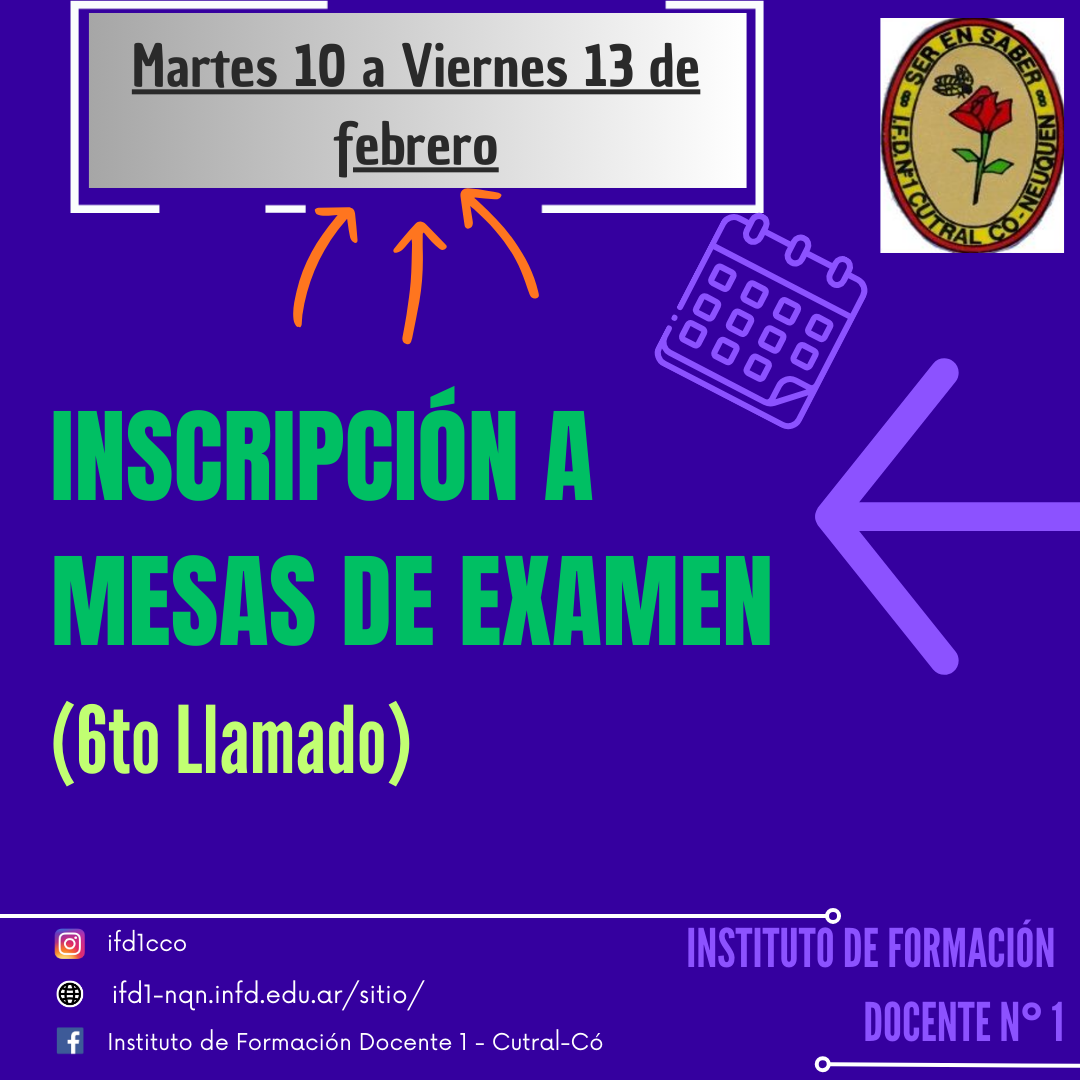 Recordamos que hasta mañana viernes 13 de febrero pueden inscribirse para el 6to llamado de mesas de examen del 2025, que comienzan el miércoles 18 de febrero.